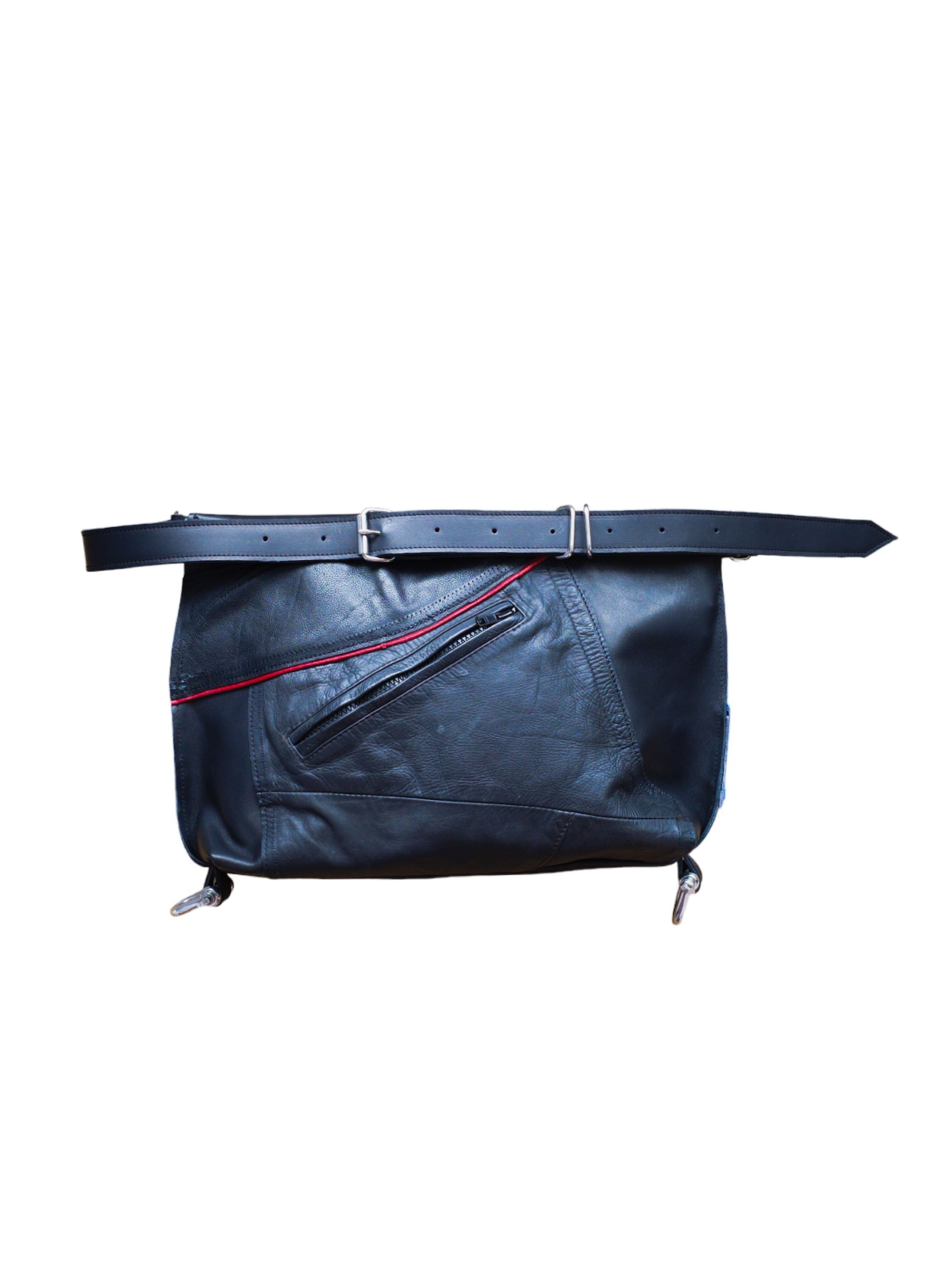 La Maison Geneviève imagine une collection d'accessoires et de sacs en utilisant des chutes de cuir et de vêtements de motards déconstruits. Cette démarche artistique et écologique combine des peausseries souples et robustes à de nouveaux volumes aux teintes électriques.