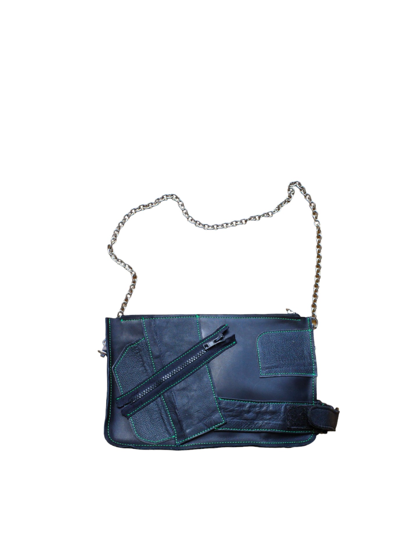 Maison Geneviève imagine une collection d’accessoires et de sacs en utilisant des chutes de cuirs et de vêtements de motards déconstruits. Cette démarche artistique et écologique combine des peausseries souples et robustes à de nouveaux volumes aux teintes électriques.