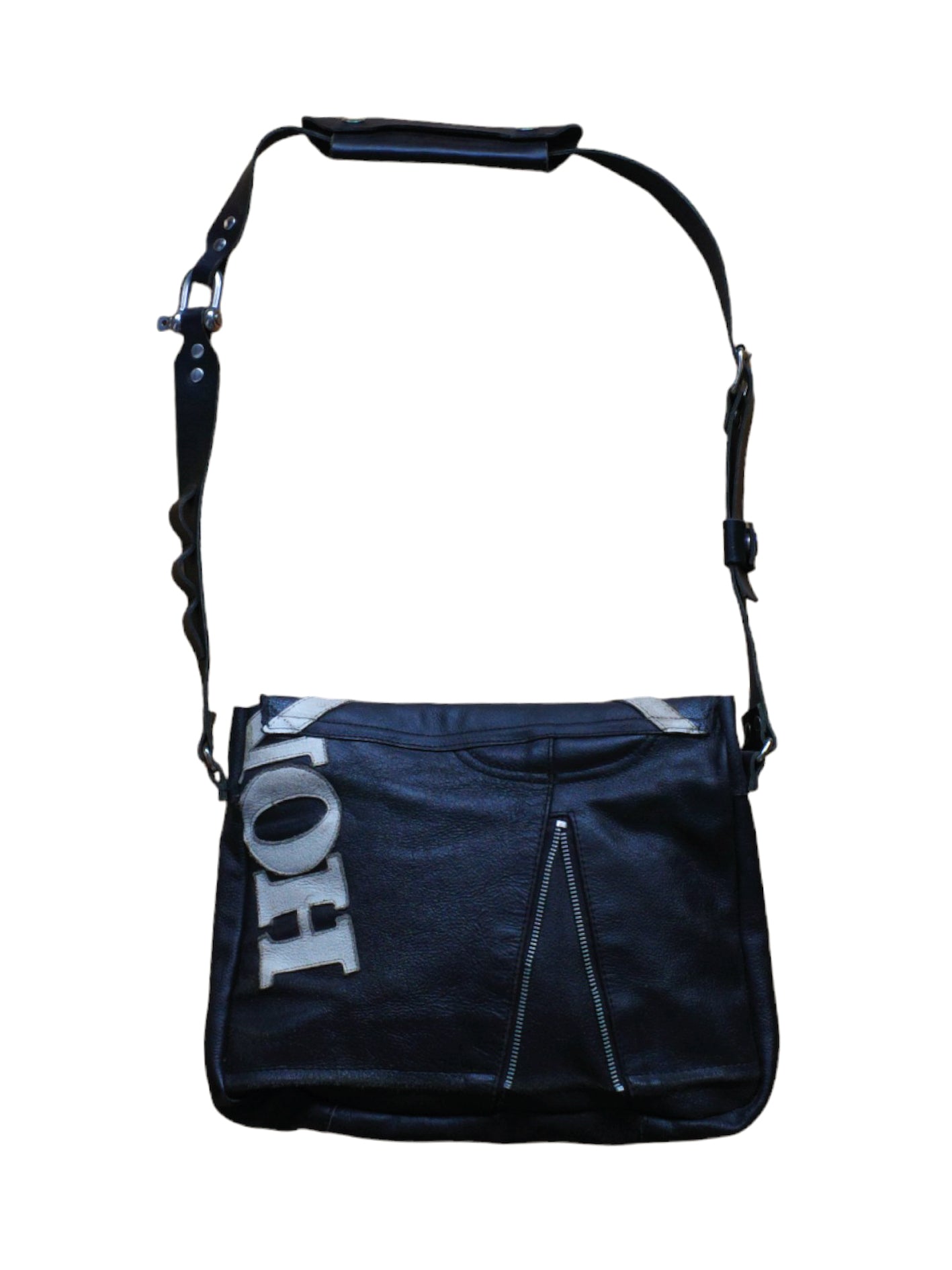 La Maison Geneviève imagine une collection d'accessoires et de sacs en utilisant des chutes de cuir et de vêtements de motards déconstruits. Cette démarche artistique et écologique combine des peausseries souples et robustes à de nouveaux volumes aux teintes électriques.