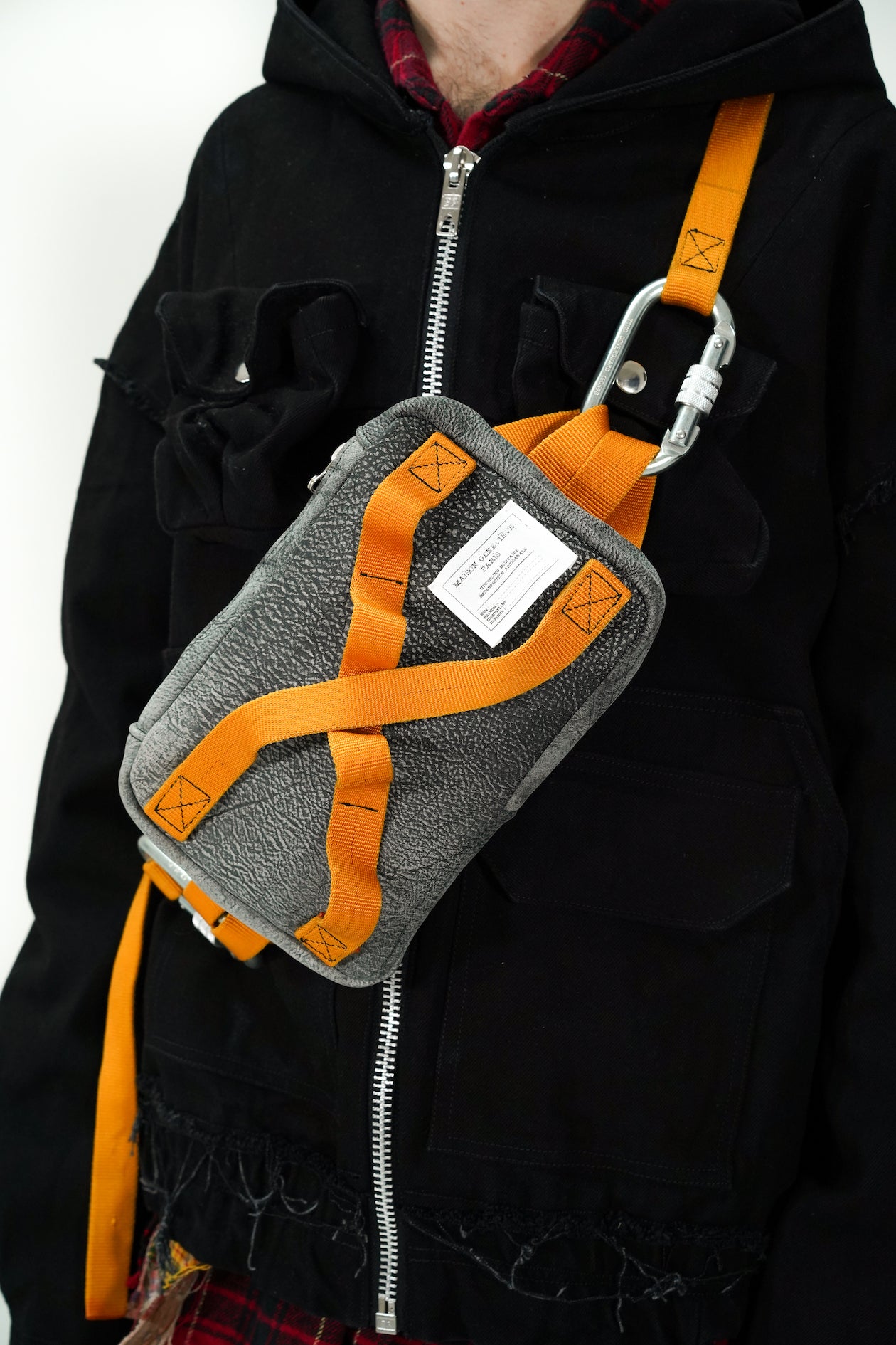 Maison Geneviève imagine une série d’accessoires et de sacs en combinant des chutes de ces tissus et vêtements militaires déconstruits afin de créer de nouveaux volumes et réduire sur impact sur l’envirronement au maximum.