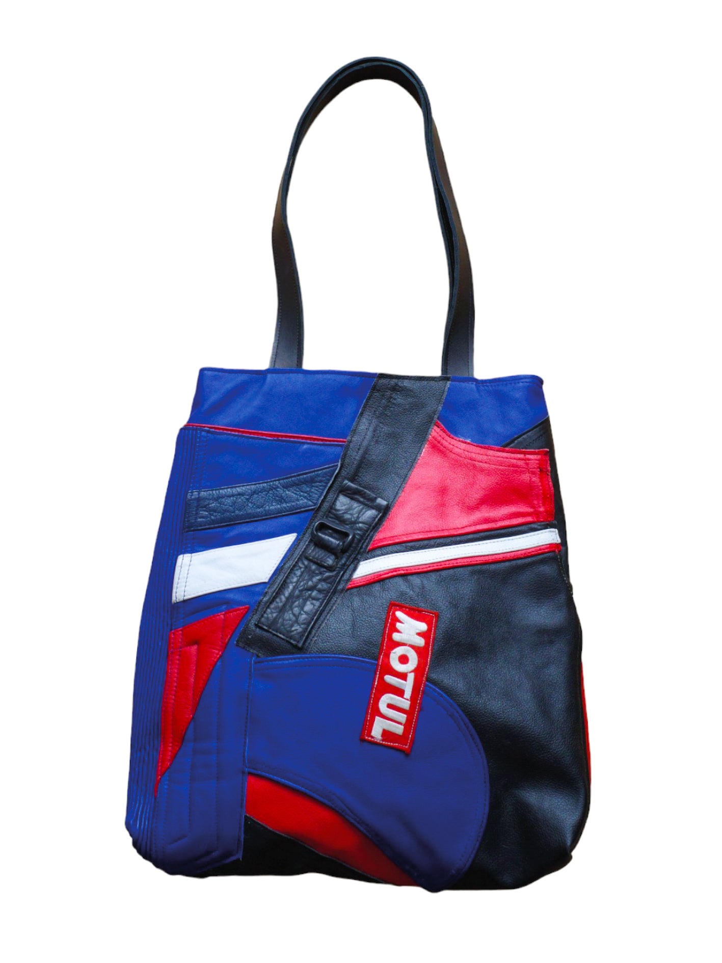 La Maison Geneviève imagine une collection d'accessoires et de sacs en utilisant des chutes de cuir et de vêtements de motards déconstruits. Cette démarche artistique et écologique combine des peausseries souples et robustes à de nouveaux volumes aux teintes électriques.