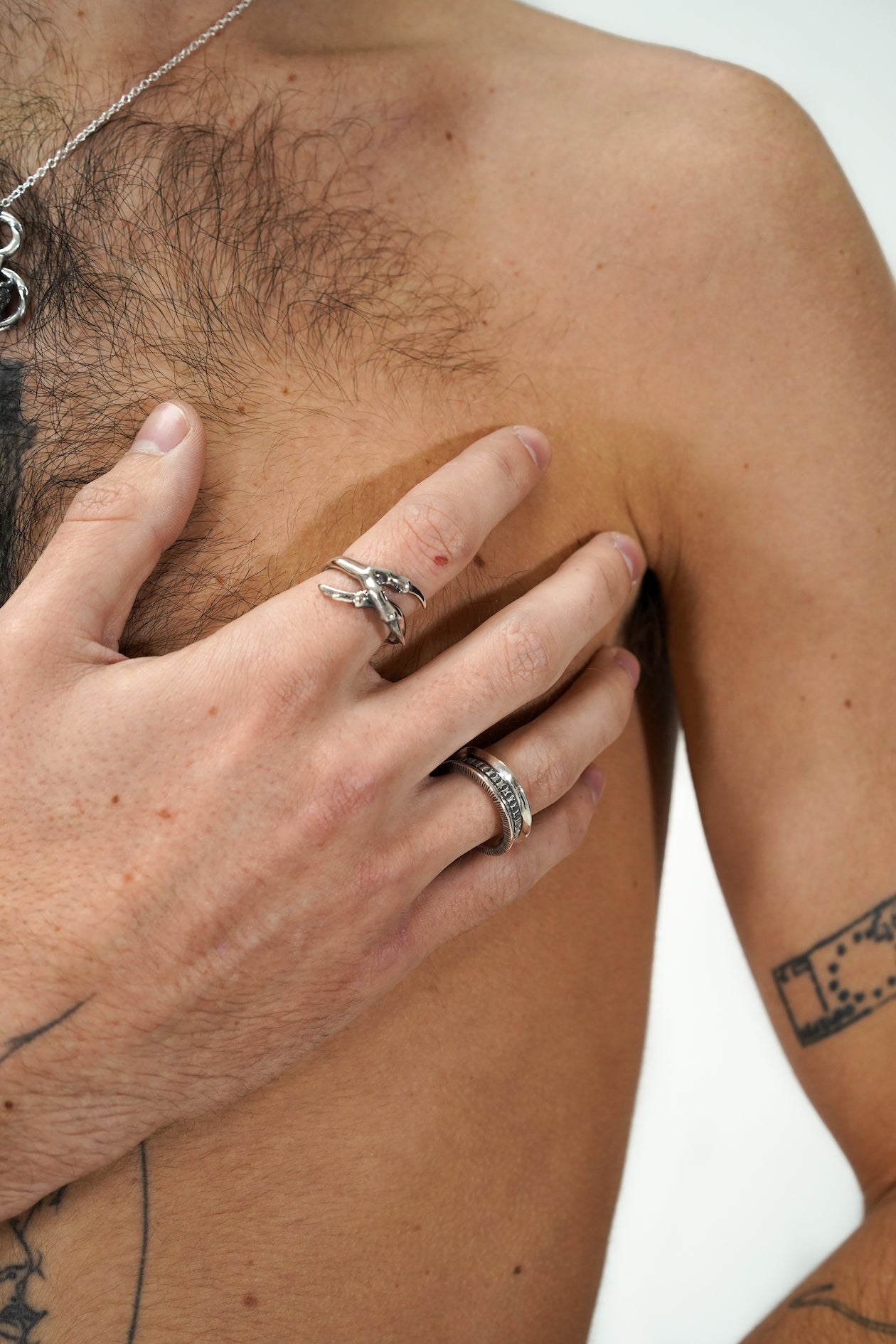 Maison Geneviève imagine des bijoux aux inspirations martiales avec une touche d’impudence. Cette bague , façonnée à la main en argent 925, représente une griffe qui se referme sur elle même, aiguisée . Pour cette création, elle puise son souffle dans l’univers japonais et des monstres et légendes qu’on peut y trouver.
