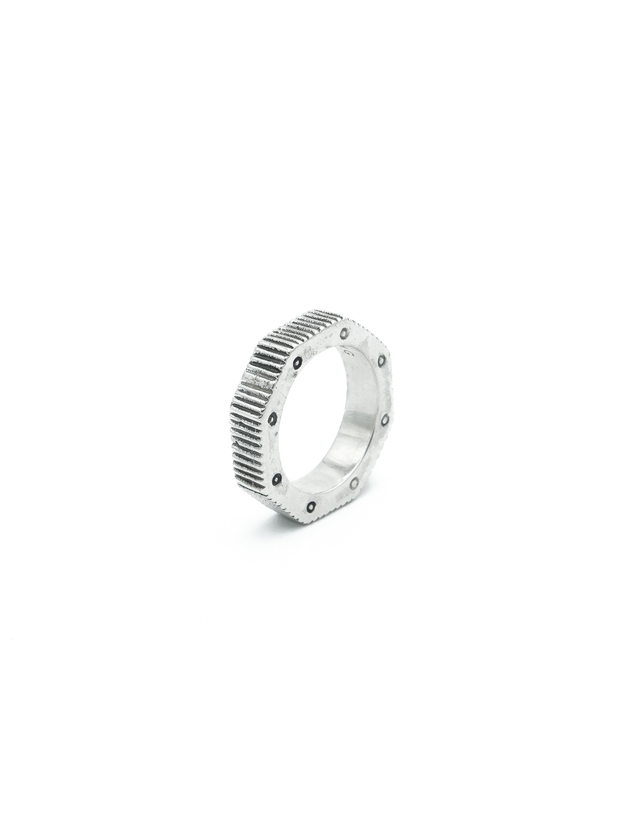 Cette bague, façonnée à la main en argent 925, représente avec précision un mécanisme.