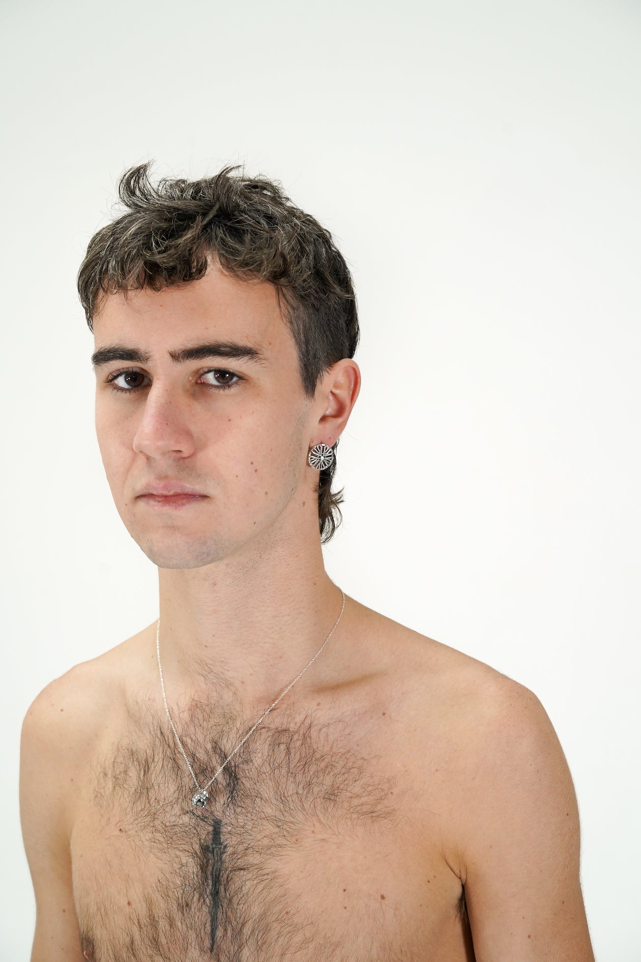 Maison Geneviève imagine des bijoux aux inspirations martiales avec une touche d’impudence. Ces boucles d’oreilles, façonnées à la main en argent 925, représentent un objet industrielle provenant d’une voiture.