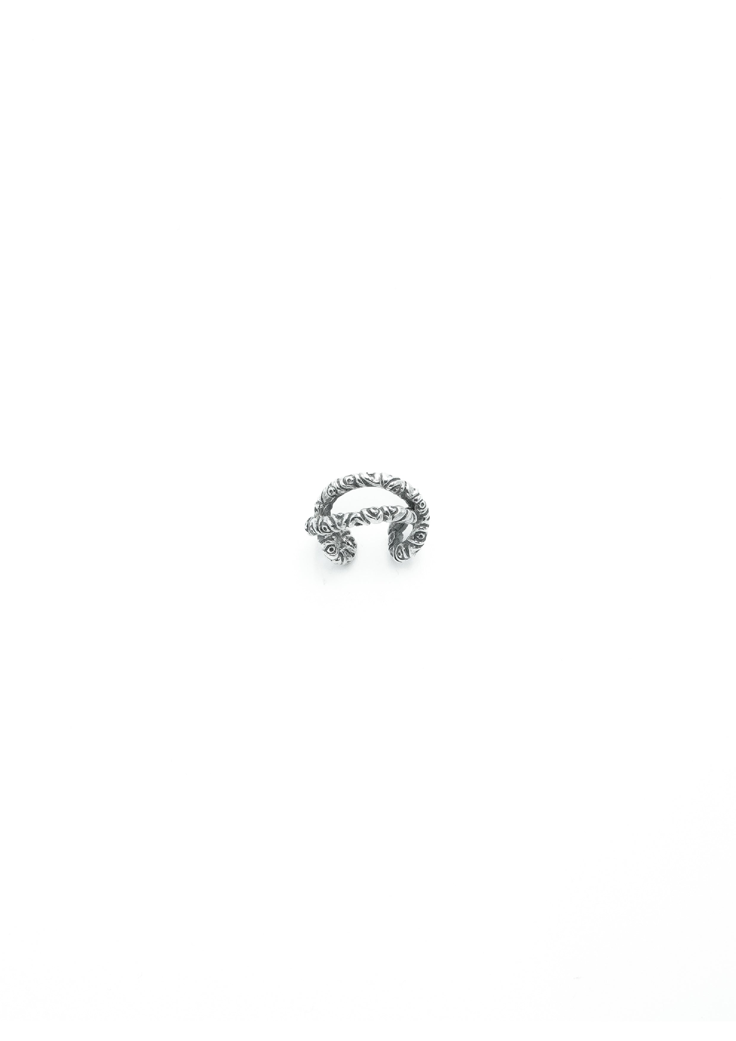 Maison Geneviève imagine des bijoux aux inspirations martiales avec une touche d’impudence. Ce earcuff, façonné à la main en argent 925, représente une forme abstraite avec des yeux accumulés.
