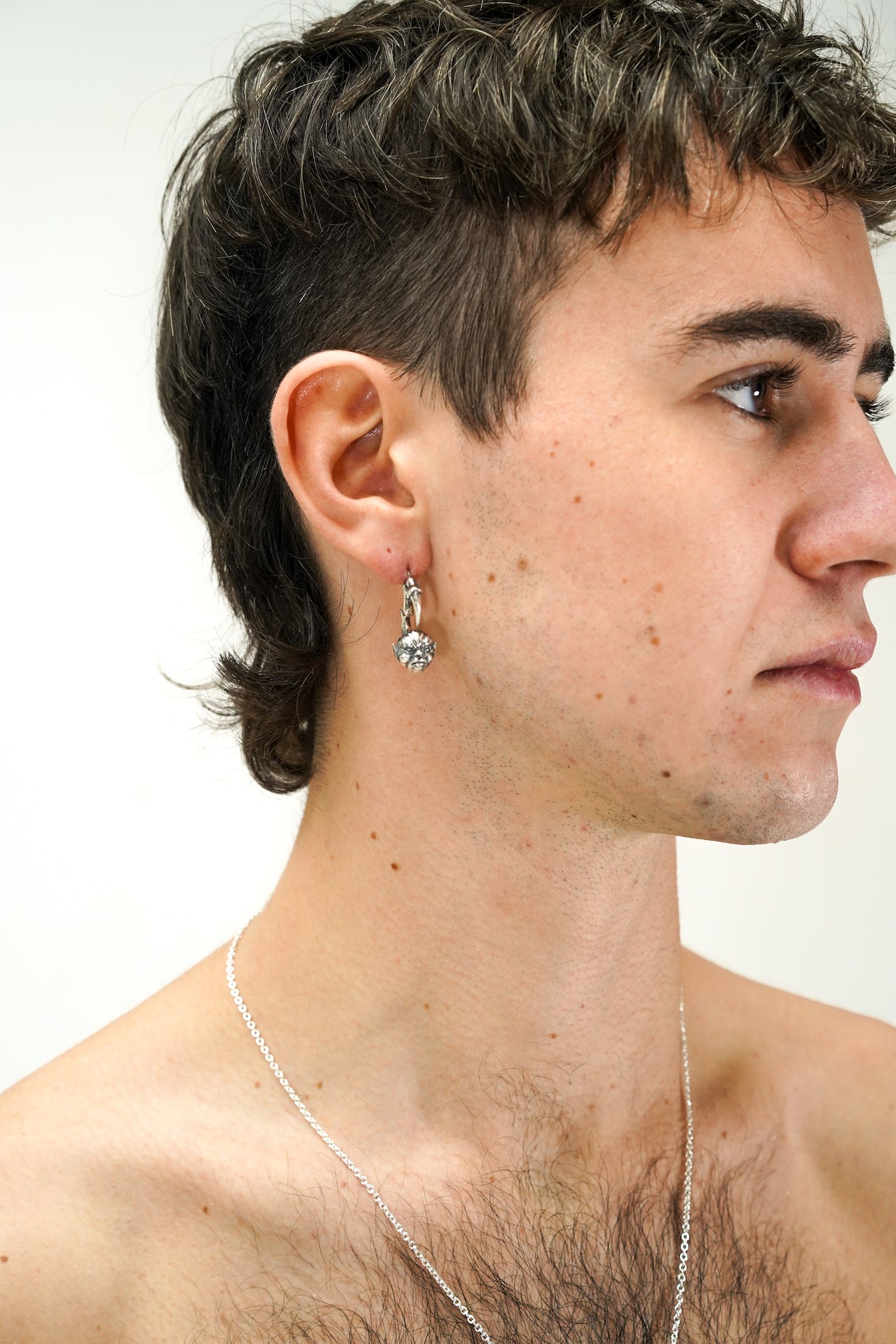 Maison Geneviève imagine des bijoux aux inspirations martiales avec une touche d’impudence. Ces boucles d’oreilles, façonnées à la main en argent 925, représentent un visage d’enfant imaginé dans l’esprit des monstres japonais avec un corps au bout d’une griffe aiguisée.