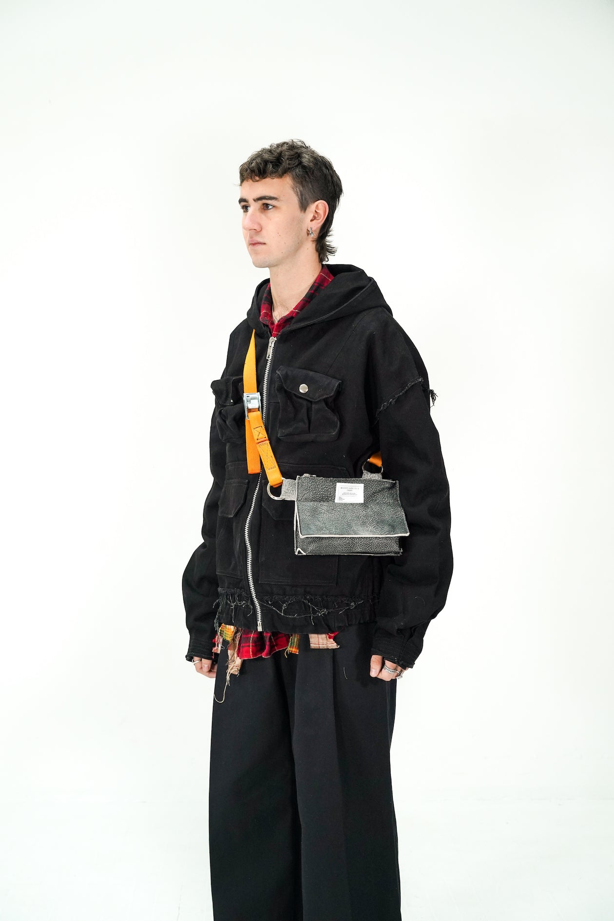 Maison Geneviève imagine une série d’accessoires et de sacs à partir de cuir noir qui a été délavé, laissant apparaître tous les détails du cuir et donnant un effet brut en adéquation avec la marque.