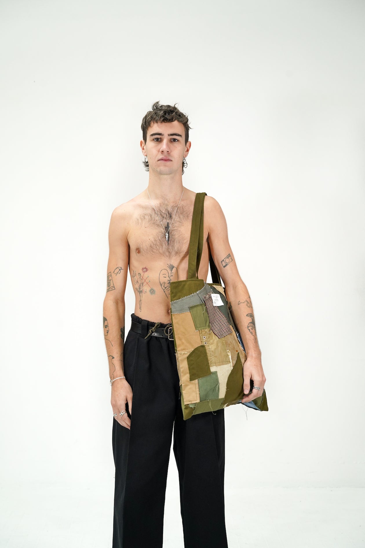 Maison Geneviève imagine une série d’accessoires et de sacs en combinant des chutes de ces tissus et vêtements militaires déconstruits afin de créer de nouveaux volumes et réduire l'impact sur l’environnement au maximum.